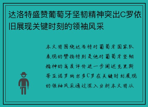 文章摘要:足球队队长是球队中至关重要的领导者,肩负着多重职责和挑战。作为球队的核心人物,队长不仅要在比赛中展现出色的竞技能力,还要在场外发挥管理、激励、协调等多方面的作用。本文将从四个主要方面对足球队队长的职责与管理技巧进行详细解析,分别是领导力的培养与发挥、队内沟通的技巧与方法、比赛中的指挥与决策...